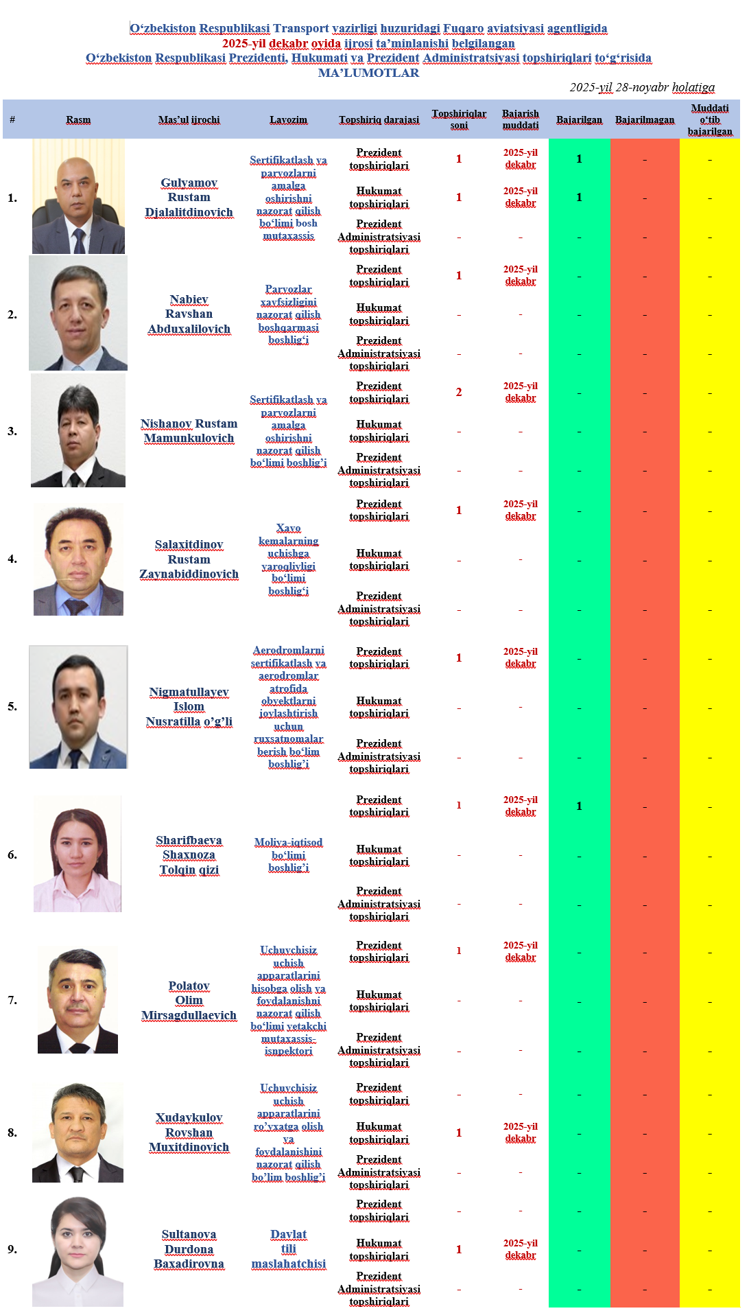 "O‘zaviatsiya" agentligining rasmiy veb-saytiga quyidagi
