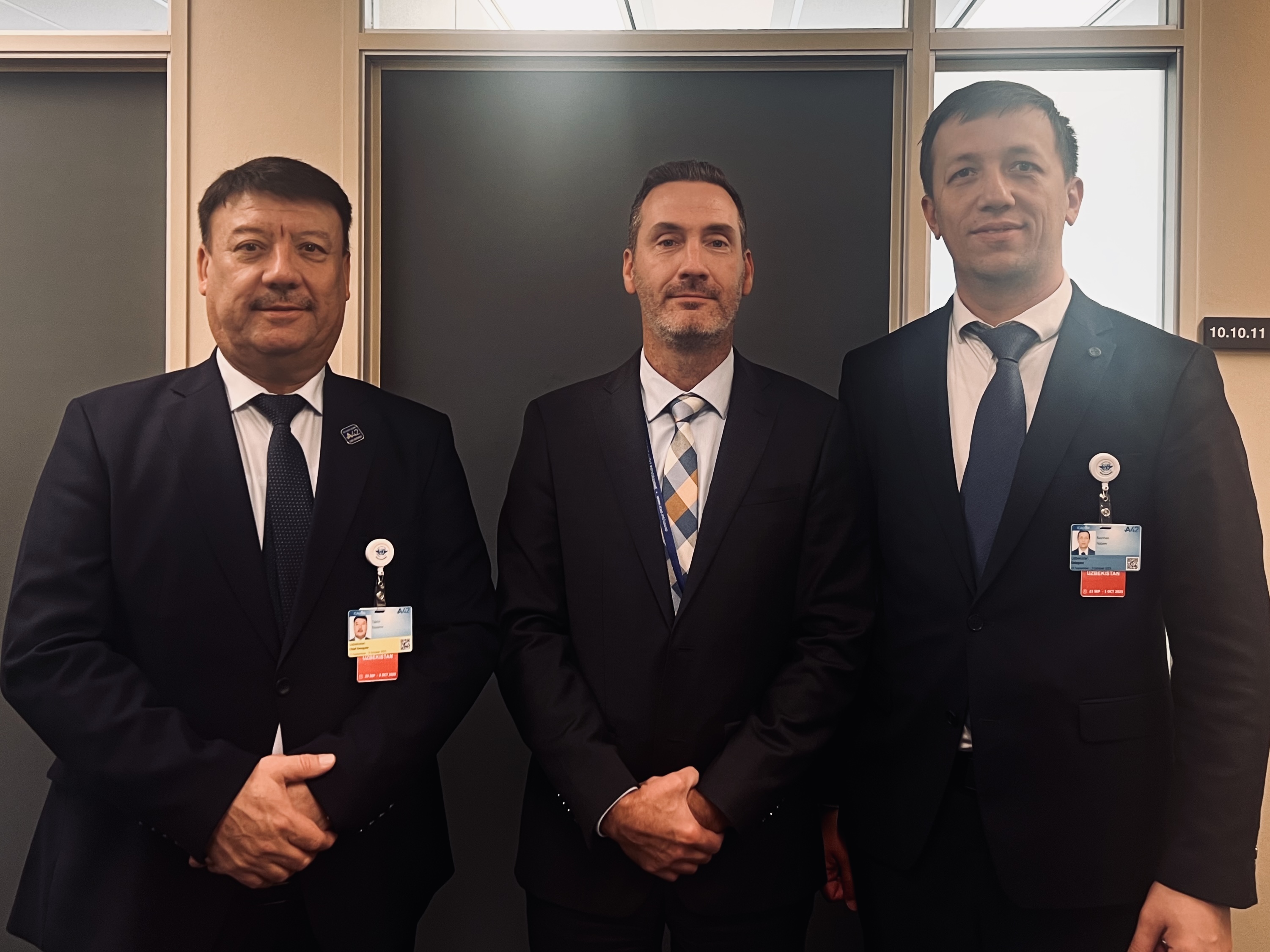 IKAO Assambleyasining navbatdagi sessiyasi doirasida “O‘zaviatsiya” agentligi direktori Toxir Nazarov boshchiligidagi delegatsiya IKAOning Bosh qarorgohida 2023-yil O‘zbekistonda parvozlar xafsizligi nazorati holati bo‘yicha o‘tkazilgan IKAO audit guruhi rahbari Frederik Prele bilan uchrashuv o‘tkazdi.